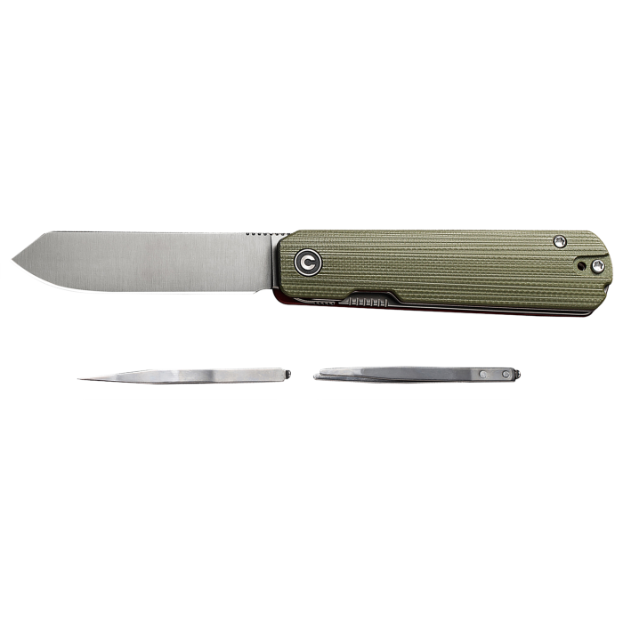 The Civivi Sendy Knife combines precision and practicality with its sleek design. Crafted with a 2.83-inch Spey Point blade made from durable NitroV steel, it ensures exceptional sharpness and edge retention. The green textured G10 handle offers a secure, comfortable grip and houses convenient tweezers and a toothpick, enhancing its utility. Weighing just 2.61 oz, this knife is lightweight yet robust, making it an ideal choice for everyday carry. The flipper open liner lock mechanism provides easy and reliable blade deployment, while the pocket clip adds to its portability. With an overall length of 6.52 inches and a closed length of 3.68 inches, the Civivi Sendy Knife is a versatile tool designed for those who value quality and functionality.