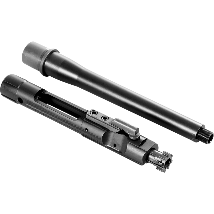 Upgrade your AR-15 build with the CMMG 9mm Radial Delayed Blowback Barrel Kit, featuring an innovative 8-inch barrel designed for enhanced performance. This kit utilizes the patent-pending Radial Delayed Blowback System, offering a significant reduction in felt recoil compared to traditional blowback designs. Enjoy a lighter, more maneuverable rifle with a bolt carrier group that rotates and unlocks, delivering a smoother shooting experience. Tailored to fit milspec AR-15 upper receivers with modified ejection ports, this barrel and BCG kit is compatible with a variety of 9mm AR Conversion magazines, as well as CMMG's MkG, MkGs, and Mk9 lowers. Finished in durable Salt Bath Nitride and featuring a 1:10" twist rate, this replacement barrel ensures reliability and precision for your pistol caliber carbine build.