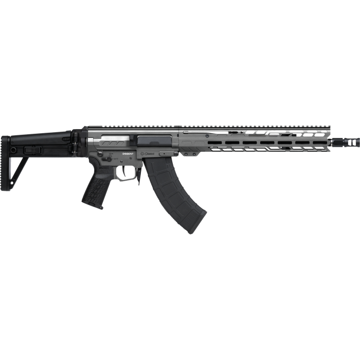 The MK47 Dissent Rifle is available in a variety of custom Cerakote finish options, and features the innovative Dissent side folding stock with adjustable length of pull and cheek riser. The Zeroed Drop-In Single Stage trigger and CMMG Zeroed 60/90 Degree safety ensure a responsive and secure shooting experience. With an overall length ranging from 26" to 35.50" and an ambidextrous design, this rifle is built for versatility and comfort.