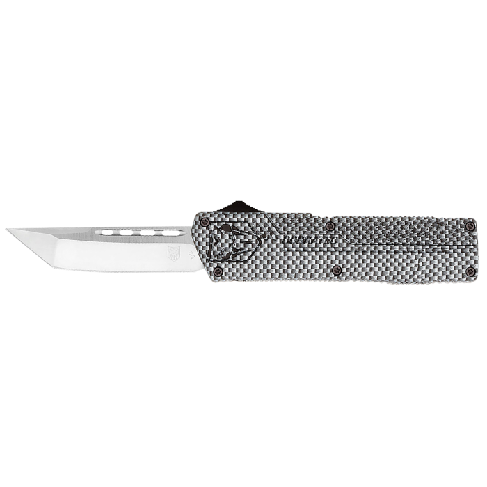 The Cobratec Lightweight OTF Knife combines premium features in a compact design. It has a 3.25" D2 steel tanto blade with smooth action and a durable 4.5" high-grade aluminum handle with a carbon fiber finish. Weighing just 4.2 oz, it offers portability with a pocket clip and nylon sheath. With an overall length of 7.75" when open, this sleek and reliable knife ensures precision and durability for everyday carry.