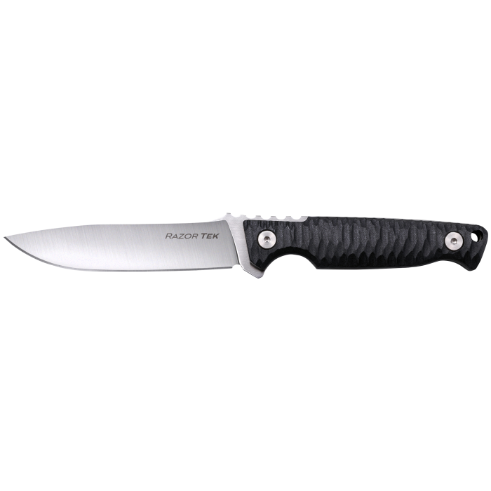 The Cold Steel Razor Tek EDC Knife is a versatile tool crafted for those who prefer a fixed blade for everyday carry. Featuring a 4-inch clip point blade made from durable 4116 Krupp stainless steel, this knife excels in various tasks, from bushcraft to field dressing small game. The plain satin finish offers a sleek look, while the black textured handle ensures a secure grip, enhanced by jimping on the spine. Lightweight at just 3.50 ounces, it is easy to manage and carry. The included Secure-Ex sheath provides multiple carrying options, allowing you to wear it around your neck, on your belt, or attached to a pack, making it ideal for outdoor adventures and self-defense.