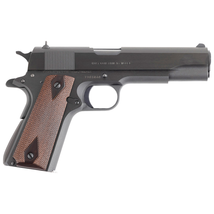 The legacy of the Colt Government Model is well-known, and this combat-proven firearm has served our Armed Forces for more than a century. This pistol features the legendary Series 70 firing system, making it a faithful reproduction of Government Models manufactured prior to World War II. This pistol also features an arched-steel mainspring housing, a short steel trigger, a standard safety lock, a standard grip safety, a spur hammer, and high profile sights.
