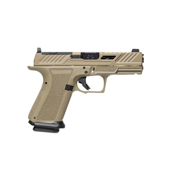 The MR920 is a compact-size pistol designed for those who seek versatility and performance. Chambered in 9mm, it boasts a Flat Dark Earth finish that enhances its robust appearance. With a 10+1 capacity and striker-fire action, this firearm is engineered for reliability and ease of use. The frame is thoughtfully designed with interchangeable backstraps, allowing for customizable grip angles to fit the shooter's natural point of aim. An extended beavertail and aggressively undercut trigger guard help to manage recoil effectively, providing greater control. The wraparound grip texture ensures a secure hold without compromising comfort during daily carry. Its slide features optic cuts, serrations, and window cuts, offering both functionality and style. The MR920 is compatible with most mini red dot sights, thanks to its adaptable optic cut design. The pistol also includes a match-grade, spiral-fluted barrel and a drop-safe, flat-faced aluminum trigger, providing a crisp and tactile reset for precision shooting. Compatible with G19 holsters and gear, the MR920 combines practicality with high-performance features.