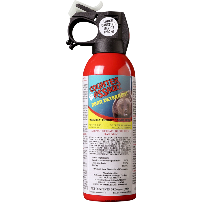 Introducing the Counter Assault Bear Deterrent Spray, a top-tier solution designed for those venturing into bear territory. Developed in collaboration with the University of Montana, this spray offers a reliable and nonlethal way to ensure safety from all bear species. With an impressive 40-foot spray distance and an 8-second spray duration, this deterrent is a must-have for hunters, fishermen, and backpackers. Featuring 2% Capsaicin and related Capsaicinoids, it delivers the maximum strength allowed by law, ensuring optimal protection. Despite its powerful capabilities, the spray remains lightweight and easy to carry, fitting conveniently on a belt. The can includes a glow-in-the-dark safety wedge with a tie string, making it accessible even in low-light conditions. Proudly made in Montana, this bear deterrent spray stands as a testament to quality and effectiveness.