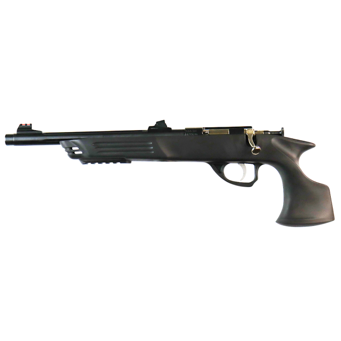The Crickett Adult Pistol stands out with its manual cocking single-shot bolt action, ensuring precision and reliability for every shot. Featuring a rebounding firing pin safety, this firearm prioritizes user safety without compromising performance. The Williams fire sights enhance accuracy, making it an excellent choice for target shooting or small game hunting. Its blued metal finish adds a touch of durability and elegance, while the black synthetic grips and stock provide a comfortable and secure hold.