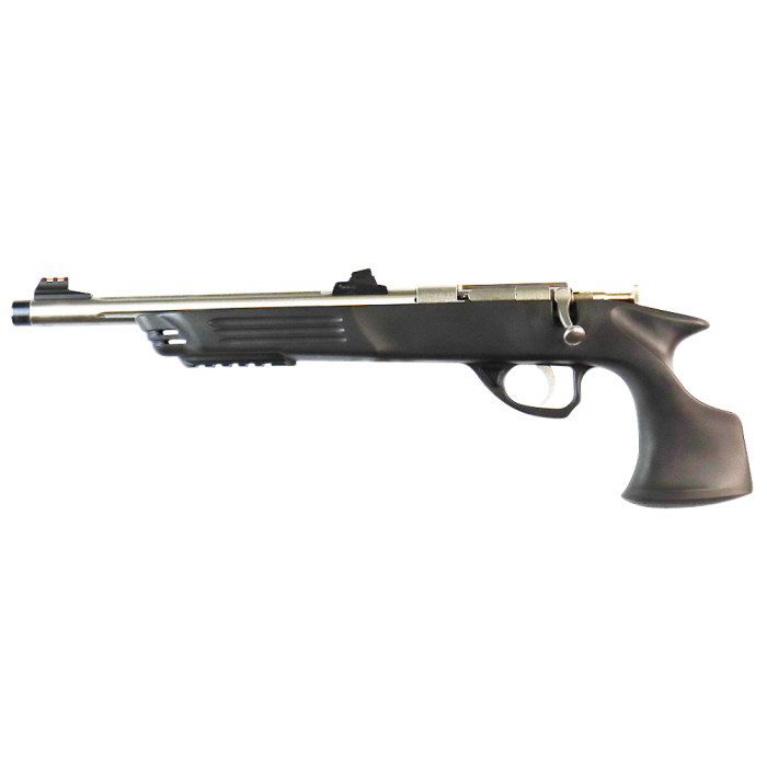 The Crickett Adult Pistol features a black synthetic stock and grips, providing a comfortable and secure hold during use. With an overall length of 17.50", this pistol is compact yet substantial, offering a balanced feel that enhances maneuverability. The synthetic stock material ensures durability and resistance to wear, making it a long-lasting addition to any firearm collection. Whether for recreational shooting or honing marksmanship skills, the Crickett Adult Pistol delivers reliable performance and precision in a well-crafted package.