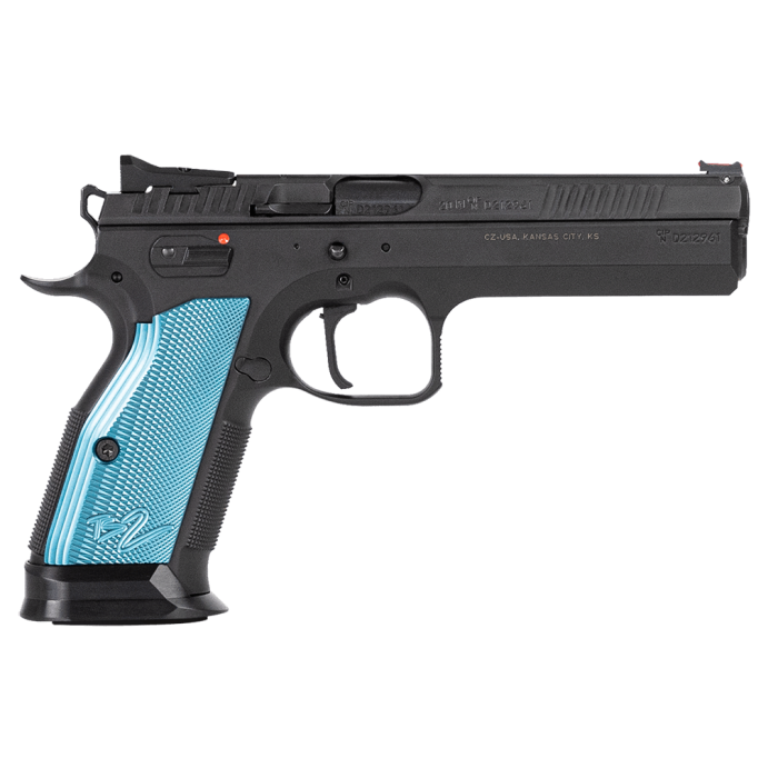 The cz tactical sport has now evolved into the ts 2.Mimicking the slide profile of the shadow 2, reciprocating weight is focused as low as possible.Paired with a redesigned frame and improved ergonomics, muzzle flip is less noticeable than ever.Front and rear cocking serrations make slide manipulation easy and a set of fixed target sights with a fiber optic front.Aluminum grips, aggressive checkering and a magwell cap it off.The ts 2 will accept a wide variety of custom parts available for the tactical sport platform.