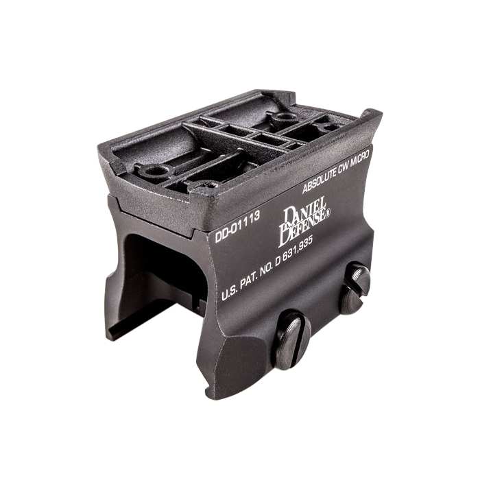 The daniel defense micro mount is designed to securely mount a variety of popular optics to your flat-top upper receiver including aimpoints micro r-1, h-1, h-2, t-1, t-2, vortexs sparc i & ii, primary arms micro dot & advanced micro dot, holosun technologies hs403, or any other optic utilizing the same type of mounting interface.Offering absolute or a lower 13rd co-witness with your back-up iron sights, this mount is ideal for shooters who are looking for one of the lightest and strongest mounts available to secure their optics.Features patented rock & lock attachment system.