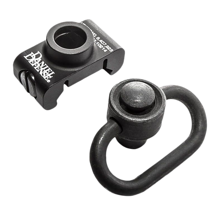 Enhance your firearm's versatility with the Daniel Defense Rail Mount QD Swivel Attachment Point. Crafted from durable black aluminum, this attachment offers seamless integration with your Picatinny rail system. The innovative design ensures a secure and tangle-free sling setup by limiting swivel rotation. Accommodating sling straps up to 1.25 inches, it includes a robust quick detach sling swivel for rapid deployment. Proudly made in the USA, this mount provides reliable performance for tactical and hunting applications.