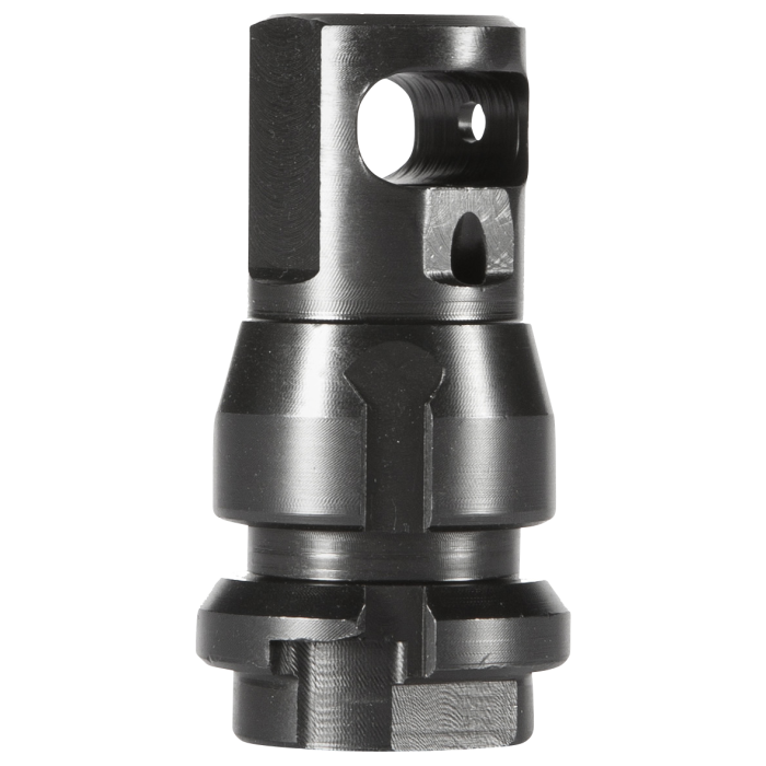 The Dead Air KeyMicro Brake 5/8"-24 is a compact and lightweight single-port muzzle brake designed for versatility across various platforms. Engineered to pair seamlessly with the KeyMicro Adapter, it delivers a minimalist yet effective braking solution on its own or serves as the foundation for an advanced mounting platform. Utilizing the same cutting-edge technology as Dead Air's renowned KeyMo system, this muzzle device ensures compatibility with a wide range of silencers, including the Wolfman, Ghost-45M, Sandman series, Nomad series, Nomad-Ti series, Primal, and Sierra-5 when used with the appropriate adapters. With a durable black finish, a precision 5/8"-24 thread pattern, and a 9mm bore, the KeyMicro Brake offers exceptional performance and adaptability for your firearm setup.