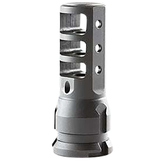 Dead Air KeyMo Muzzle Brake 46 with 5/8-32 threads delivers superior recoil management and provides a rock-solid attachment point for Dead Air suppressors. Designed for .45 caliber firearms, it reduces muzzle rise and recoil while ensuring a seamless fit. Precision-engineered, this muzzle brake stands out with its versatility, durable construction, and perfect compatibility with Dead Air’s KeyMo system for quieter and more effective shooting.