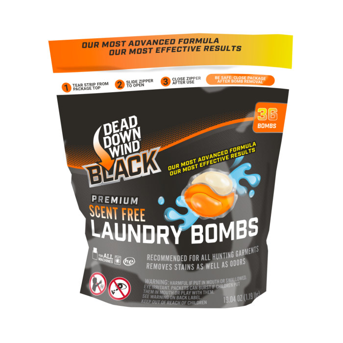 Dead Down Wind Odor Eliminator Laundry Bombs offer a powerful yet gentle solution for cleaning hunting garments while eliminating all traces of odors that could give away your position in the wild. These premium laundry bombs are designed for ultimate convenience, with a grab-and-go application that simplifies washing on the go, especially during hunting trips. The advanced enzyme-based formula effectively removes dirt, grime, and scent molecules while being safe for sensitive skin and free from harmful biocides. Perfectly suited for all types of hunting apparel, including carbon, technical, natural, and synthetic materials, these laundry bombs ensure your gear remains fresh and ready for action. With an unscented odor-eliminating formula and a commitment to environmental safety, Dead Down Wind Laundry Bombs stand apart as the ideal choice for hunters who demand both performance and care for their clothing. Each bag contains 36 easy-to-use bombs, making it an essential addition to any hunting gear collection.
