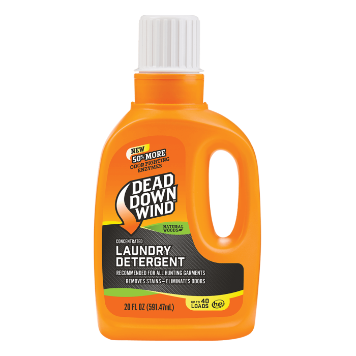 Dead Down Wind 20oz Odor Eliminator Jug in Natural Woods scent is the ultimate solution for keeping your outdoor gear fresh and ready for the field. Featuring innovative enzyme scent prevent technology, this triple-action laundry detergent is the only one of its kind on the market, designed to clean, deodorize, and extend the life of your garments all in one step. Unlike standard detergents, it doesn’t just mask odors—it eliminates them, tackling a wider range of smells for unmatched effectiveness. The addition of a Natural Woods scent provides a subtle, earthy aroma reminiscent of the forest, making it perfect for outdoor enthusiasts. Packaged in a convenient jug, this product is built for those who demand performance and reliability when it matters most.