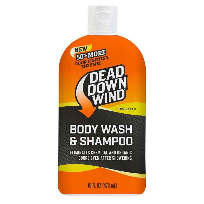 Dead Down Wind Odor Eliminator Body & Hair Wash, 16 oz, is your ultimate partner in achieving a scent-free start to any outdoor adventure. Designed with a powerful skin-positive enzyme formula, this body and hair wash not only effectively removes body odor but also tackles residual and contact odors that can linger. Unlike ordinary washes, it goes the extra mile by nourishing your skin while eliminating smells that could give you away in the wild. Perfectly unscented, this odor eliminator ensures no artificial fragrance interferes with your environment, giving you the best chance to remain undetected. Step out of the shower and into the woods with complete confidence, knowing you're creating the perfect zero-scent environment for your next hunt.
