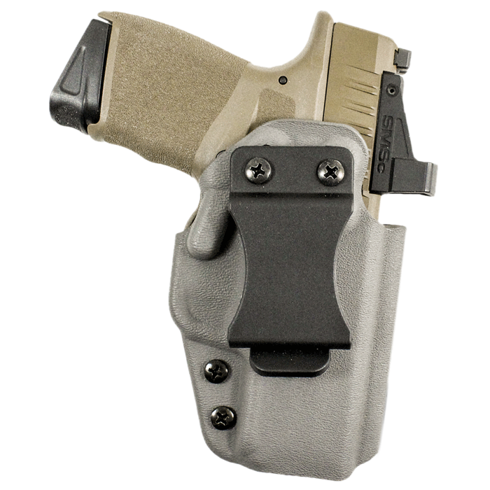 The DeSantis Mean Streak IWB Pewter Kydex Holster offers unmatched durability with its robust .080 gray Kydex construction. Designed to fit Glock 19, 45, 23, and 32 models, this holster delivers superior concealment using an integrated claw to draw the firearm grip close to your body, while the sweat guard ensures all-day comfort. RMR compatibility adds versatility, and the right-hand belt clip mount guarantees a secure and seamless carry every time.