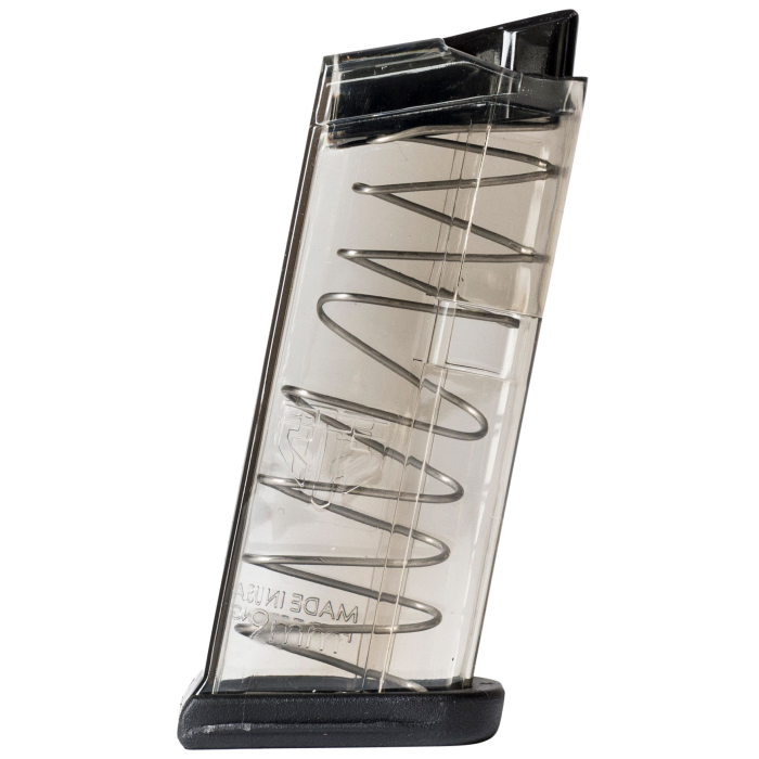 This sleek magazine is designed specifically for the Glock 43, offering a 7-round capacity for 9mm ammunition. With its carbon smoke finish, it not only enhances the firearm's appearance but also ensures a secure and flush fit. The robust construction promises durability, while its compact design maintains the Glock 43's streamlined profile, making it an ideal choice for both concealed carry and everyday use.