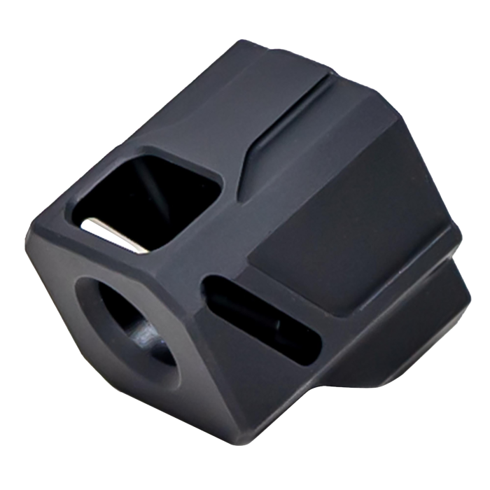 Unlock peak performance for your Glock Gen 4 9mm with the Faxon EXOS543 Compensator. Precision-crafted from durable 6061 aluminum and finished with sleek black anodizing, this Glock-exclusive compensator is engineered for next-level control. A distinctive single-chamber design with angled front ports channels gas upward to reduce recoil and muzzle climb for enhanced firing consistency. Enjoy a seamless fit to Faxon barrels with optimized barrel protrusion or compatibility with barrels extending .600" or less. Includes thread locker, set screws, and Allen wrench. Designed for Glock 19 Gen 4, Glock 17 Gen 4, and Glock 34 Gen 4 models only.