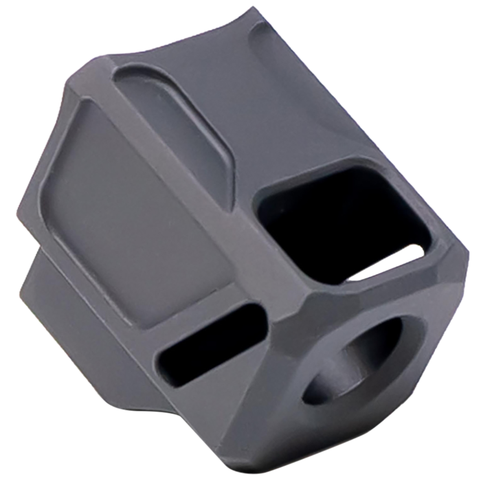 The Faxon Firearms EXOS-533 Pistol Compensator is a precision-engineered accessory designed to elevate your shooting experience. Constructed from durable 6061 aluminum with a sleek black anodized finish, this compensator features a uniquely angled front port single chamber design. This innovative design effectively reduces muzzle climb and recoil by redirecting gases upward, ensuring greater consistency and improved reliability with every shot. Specifically tested and confirmed to be compatible with Glock 43X and Glock 48 pistols, it provides a flush fit with Faxon branded barrels and accommodates other barrels with a protrusion of .600 or less. Each EXOS-533 compensator includes thread locker, two 6-32 set screws, and a 1/16 allen wrench for easy installation. Take your performance to the next level with this expertly crafted compensator.