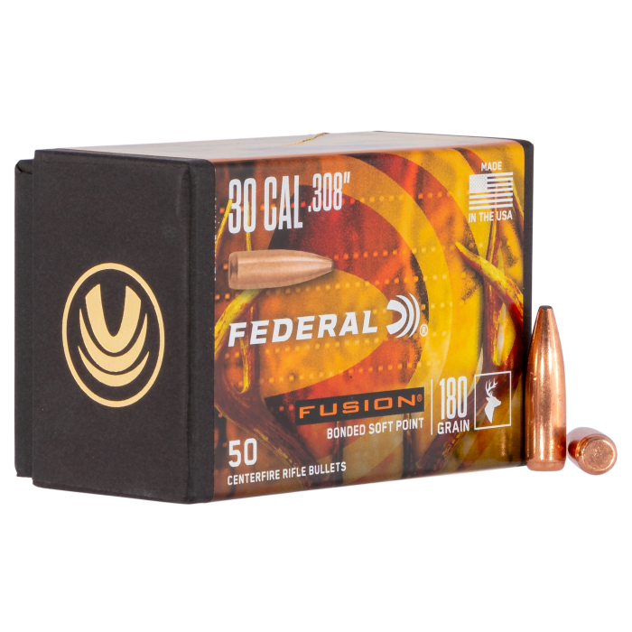 The 30 Caliber 0.308'' 180gr Bonded Soft Point bullets are designed for precision and performance. Manufactured under the Fusion Component Bullet brand, these bullets feature a bonded construction that ensures maximum weight retention and energy transfer upon impact. The soft point design offers controlled expansion, making them an excellent choice for hunting and shooting applications. With a caliber of 30 and a diameter of 0.308 inches, these bullets deliver reliable accuracy and terminal performance. Each box contains 50 bullets, providing ample supply for your shooting needs.