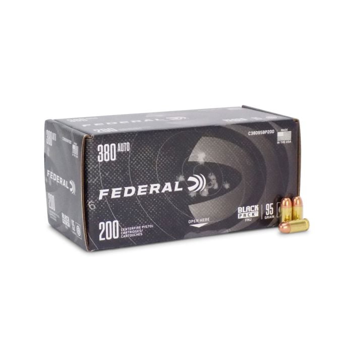 Federal is known for creating reliable and affordable ammo in their American Eagle line, and now with the Black Pack offerings, the value is even greater! These. 380 ACP rounds are equipped with Federal's newly made and reloadable brass casings, consistent primers and propellants, and an FMJ projectile, making them great for getting your accuracy honed in at the range. Dont miss your chance to stock up on a higher volume of .380 ACP ammunition, or build your pre-existing stash of ammo!
