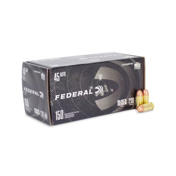 Federal American Eagle creates a reliable and consistent ammunition product at a great value for the American firearms and shooting community, and now their Black Pack packaging is increasing their value per round by offering great quantities! With newly made and reloadable brass casings, great Federal primers and propellants, and a hefty 230 grain full metal jacket bullet, these classic .45 ACP cartridges are a great buy. Dont miss your chance to stock up on 45 ACP ammunition with these Black Packs, or begin building your ammo stash.