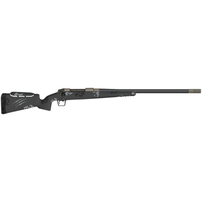 The Carbon Rival FP is equipped with a titanium Fierce dual-lug action, a 70-degree bolt throw, and an unobstructed bolt cycle when shooting with an oversized scope. Precision cut raceways and the tightest machined tolerances ensure accuracy and lock up, while the 2-position safety and Bixn Andy match grade adjustable trigger (1-3 lbs.) provide reliability and customization. The rifle also features a hinged floor plate, a Fierce C3 carbon fiber barrel with a matrix finish, a match grade hand lapped barrel liner, and a radial titanium muzzle brake.