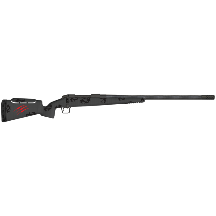 Equipped with a fierce C3 carbon fiber barrel and a radial titanium muzzle brake, the CT Rival FP guarantees 1/2 MOA accuracy. The C3 carbon rival stock features a vertical palm swell pistol grip and a high negative comb cheekpiece with an adjustable comb. Additional features include an integral pic rail for bipod attachment and a solid carbon bedding system, all wrapped in a striking digital camouflage finish.