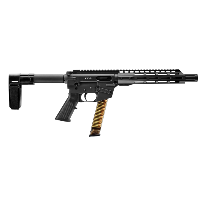 The FX-9 Pistol (Freedom Xtreme) is an exceptional firearm designed for the avid AR-15 user, featuring a familiar set of operating controls. This versatile pistol accepts AR-15 stocks and buffer tube assemblies, as well as most free-float AR-15 rail assemblies, making it highly customizable. Crafted from billet material, the FX-9 boasts anodized type III aluminum components and full hard nitride steel components, including the barrel, bolt, ejector, last round hold open, feed ramp, and extractor, ensuring extended wear properties and superior corrosion resistance.