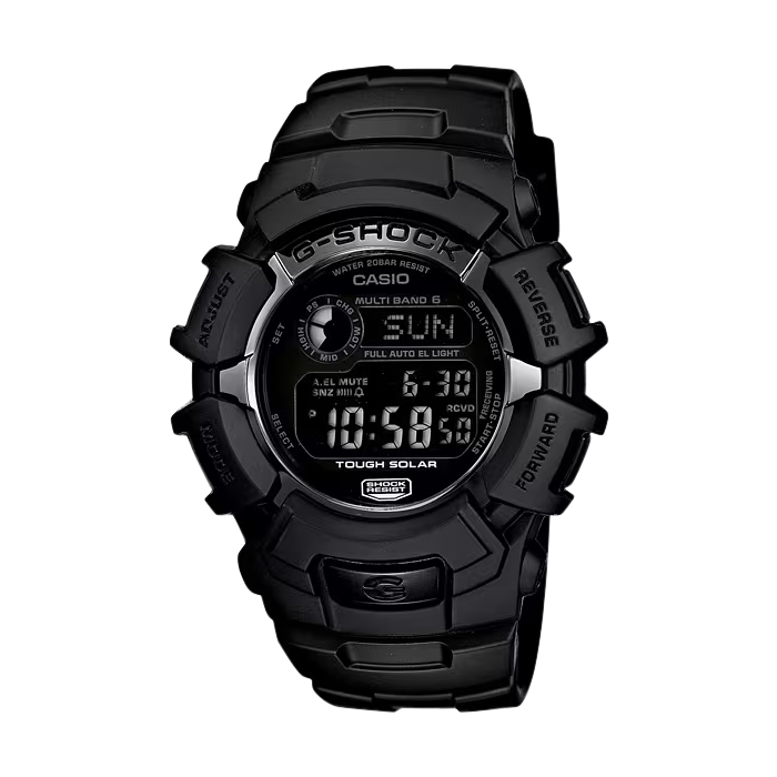 The G-Shock Tactical Black Solar Powered Watch is a sleek and durable timepiece designed for the modern adventurer. Its stealth black design is complemented by a black ion-plated stainless steel bezel and a reverse LCD display, exuding a rugged yet sophisticated aesthetic. Renowned for its robust functionality, this watch offers essential features such as five alarms, a 1/100th second stopwatch, a countdown timer, and world time. It also boasts a full auto EL backlight and is powered by a tough solar system, ensuring reliability in any environment. With MultiBand 6 Atomic Timekeeping, you can trust its precision no matter where you are. The black resin band adds comfort and durability, making it a dependable companion for those who demand both style and substance.