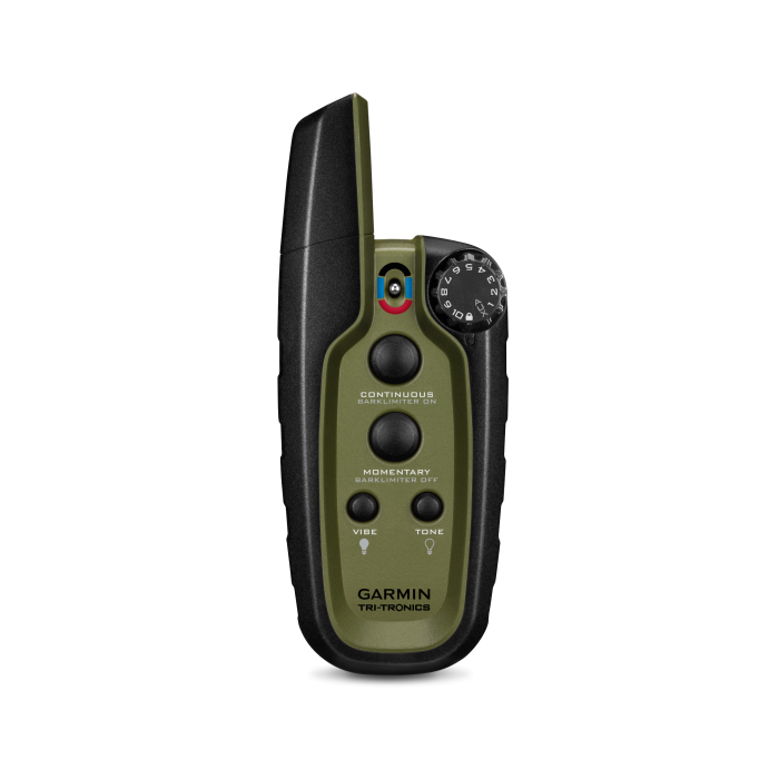 The Garmin Sport Pro Handheld Dog Trainer in green offers a streamlined and efficient training experience for dog owners.