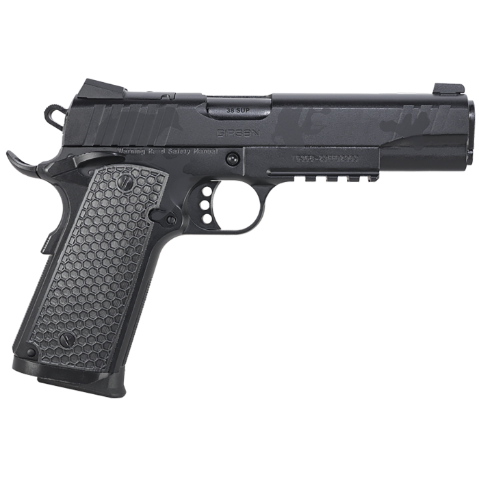 The Girsan MC1911 S in 38 Super offers a perfect blend of precision and style. This pistol stands out with its sleek black camo steel finish and a 5-inch barrel, ensuring both durability and performance. It features a slide that is optic ready and serrated for enhanced control. The ambidextrous safety and adjustable sight provide versatility and accuracy for both left and right-handed shooters. Equipped with a long hole hammer, accessory rail, and enhanced trigger system, this firearm is designed for those who demand reliability and customization. Its black polymer grips ensure a firm hold, while the 9+1 capacity and single-action operation make it a formidable choice for enthusiasts seeking a distinctive and efficient handgun.