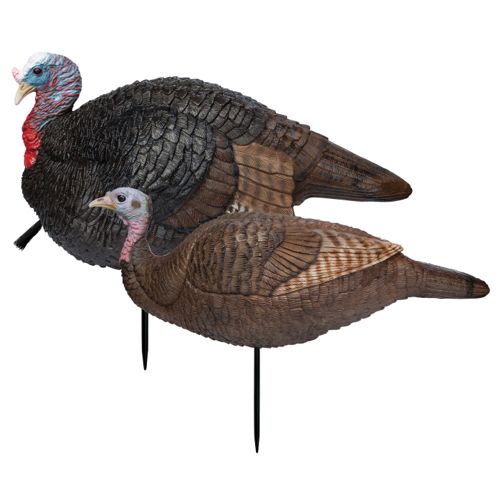 The Primos Lil Gobblestopper Turkey Decoy Combo offers a realistic and effective solution for turkey hunters seeking an edge in the field. This set includes both a Jake and Hen decoy, meticulously crafted to resemble smaller, non-threatening turkeys. These decoys are designed to attract dominant gobblers, making them ideal for strategic hunting scenarios. With lifelike head postures and a multi-color finish, they deliver an authentic appearance that convinces even the wariest of turkeys. The lightweight, collapsible design ensures easy transport and setup, allowing you to swiftly position yourself for success. Each decoy comes with a two-piece stake, enhancing stability and ease of use.