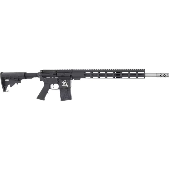 The Great Lakes Firearms AR-15 in 450 Bushmaster is a robust and versatile rifle designed for those who demand performance and reliability. Weighing in at a manageable 6.40 lbs, this semi-automatic rifle is perfect for right-handed users. It features an 18-inch M4-style barrel with a 1:24" twist, complemented by a compensator for improved shooting stability. The 7075-T6 aluminum receiver ensures durability, while the adjustable black stock offers customizable comfort. The rifle's 36.50" overall length and 15.25" M-LOK handguard enhance handling and accessory mounting options. It has a 5+1 capacity and utilizes a safety selector switch for secure operation. With no sights included, this rifle allows for personalized optic choices to suit any shooting style.