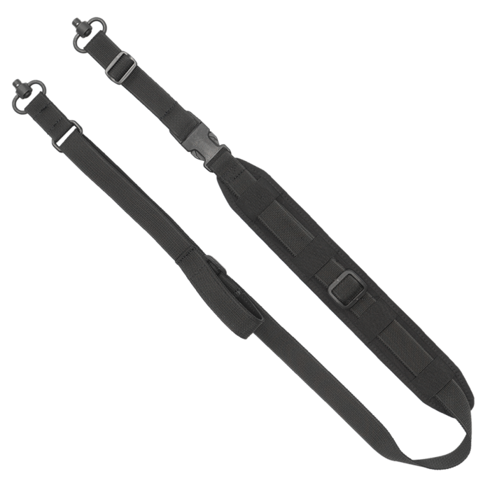 Experience comfort and functionality with the QS 2Point Sentinel Sling, designed for optimal rifle carry. This black adjustable sling features a durable 1-inch wide webbing complemented by a wider 2-inch shoulder pad for enhanced support. The innovative Quick Slide mechanism allows for effortless length adjustment, ensuring a perfect fit for any situation. Equipped with an emergency release buckle, this sling offers reliable security and quick accessibility. Complete with sturdy push-button swivels, the QS 2Point Sentinel Sling is an essential accessory for any rifle enthusiast seeking a blend of convenience and durability.