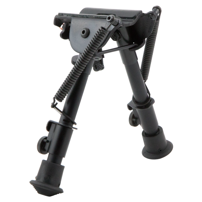 Enhance your shooting precision with the Harris Steel Aluminum Bipod, designed for bolt action rifles with a Q.D. stud. This robust bipod features a sleek black anodized finish, combining heat-treated steel and hard alloys for superior durability. The spring-loaded folding legs provide quick height adjustments from 6 to 9 inches, ensuring stability in various terrains. Equipped with rubber feet, it offers a firm grip and steady aiming experience. Weighing just 9.80 ounces, this lightweight accessory maintains balance without adding bulk. Its swivel stud attachment allows for easy setup, making it an essential addition for any shooting enthusiast seeking reliability and performance.