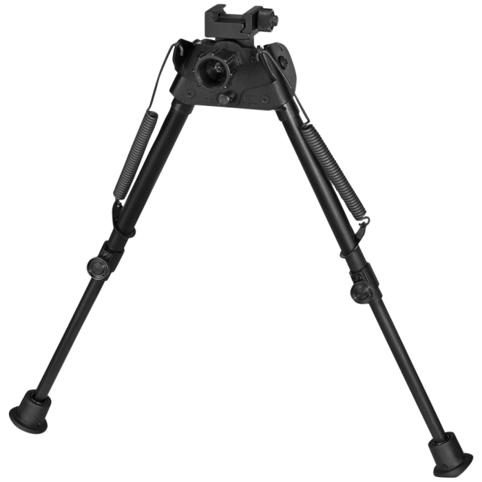 The Harris Steel Aluminum Bipod offers precision and stability for your shooting needs, seamlessly clamping onto your rifle with its Picatinny mount. Featuring a versatile vertical adjustment range from 9 to 13 inches, this bipod adapts to your specific requirements, ensuring optimal positioning. The rubber feet provide excellent grip, while the spring-loaded folding legs allow for quick height adjustments. Crafted from a durable blend of heat-treated steel and aluminum, it boasts a sleek black anodized finish, combining robustness with a lightweight design. Weighing just 15 ounces, this bipod is perfect for adding stability without extra bulk, making it an ideal accessory for serious marksmen.