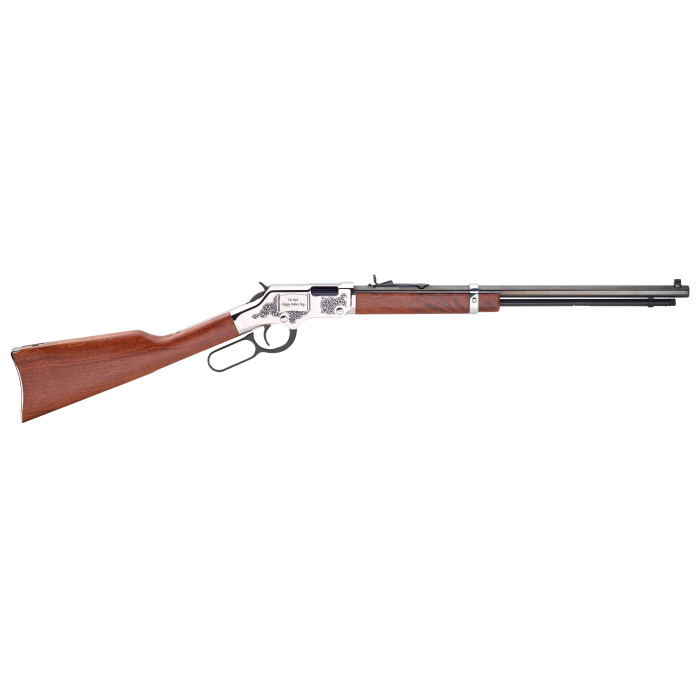 Chambered in .22 Short, Long, and Long Rifle, the Golden Boy Silver offers versatility with a capacity of 16 rounds for LR and 21 rounds for Short. The rifle’s engraved receiver includes a Father’s Day tribute, adding a sentimental touch that makes it a cherished gift. Its 1/4 cock safety mechanism ensures safe handling, while the 1:16 twist rate guarantees consistent accuracy.