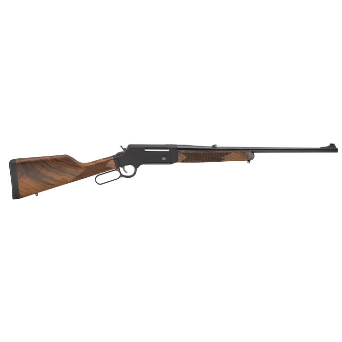 When you need distance and precision, Henry gives you a whole new hunt with the Long Ranger. Definitely not your Grandpa's Henry, the Long Ranger retains traditional lever action operation with exposed hammer and forged steel lever, but updates it with a geared action that drives a machined and chromed steel bolt with a 6-lug rotary head into a rear extension of the barrel for a strong and consistent lock-up from shot to shot to shot. Its American walnut stock has a straight grip with cut checking on the grip and forearm. The Long Ranger has a 20" round, free-floated steel barrel with a blued finish, and a drilled/tapped receiver made of lightweight alloy with a black hardcoat anodized finish. It includes swivel studs, a removable magazine, hammer extension and scope mount.