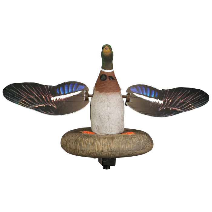 The Higdon XS Floating Flasher Mallard Drake is designed to bring lifelike movement to your decoy spread. Featuring photo-printed wings for enhanced realism, it mimics the natural motion of a mallard drake stretching or landing. Its textured float blends seamlessly with the water's natural colors. The flasher is equipped with a compact 12V Li-ion battery, reducing its size and weight, and is housed within the decoy body. With an antiflipping device and water-resistant switch, it performs reliably even in high winds. The quick-charge port ensures a fast recharge time of just three hours. The package includes the decoy, battery, charger, and instructions, and it is compatible with a remote receiver, available separately. An optional additional battery can also be purchased to extend its operating time.