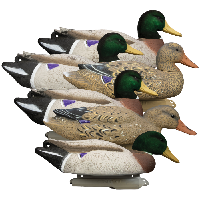 Enhance your waterfowl hunting experience with the Higdon Battleship Oversized Multi-Color Foam Filled Mallards. Expertly designed for maximum impact, these decoys offer unmatched realism and visibility. With flocked heads and a detailed painting process, each decoy captures intricate feather details, ensuring a lifelike appearance even in wet conditions. The innovative swivel heads allow for various poses, while the weighted keel ensures quick and easy setup, perfect for shallow waters. This variety pack includes six oversized decoys—featuring drakes and hens in upright, low head, and feeder positions—providing versatility and effectiveness in any hunting scenario. Durable and unsinkable, these decoys are built to withstand the elements without peeling or fading, making them a reliable choice for dedicated hunters.