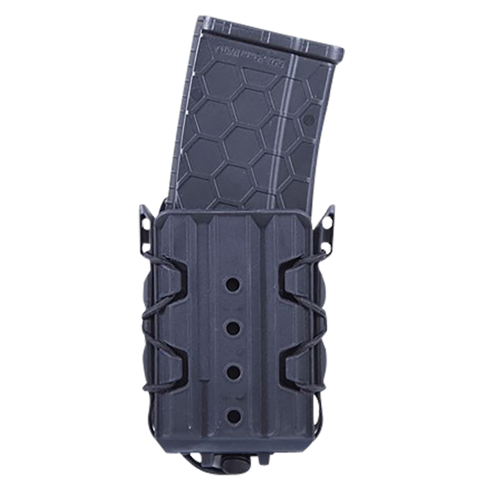Crafted with precision for adaptability, the High Speed Gear TACO V2 in black polymer is your go-to solution for versatile gear management. Designed to accommodate a range of equipment, this holder offers a sleek, waterproof construction that's easy to maintain. With its innovative mounting system, the TACO V2 seamlessly integrates MOLLE and belt clip compatibility, fitting belts up to 2 inches. Its advanced design includes an integrated storage area for shock cord tails and a taller back panel, ensuring effortless magazine reinsertion. Perfect for those with dynamic mission needs, the TACO V2 provides the flexibility to configure various loadouts efficiently.
