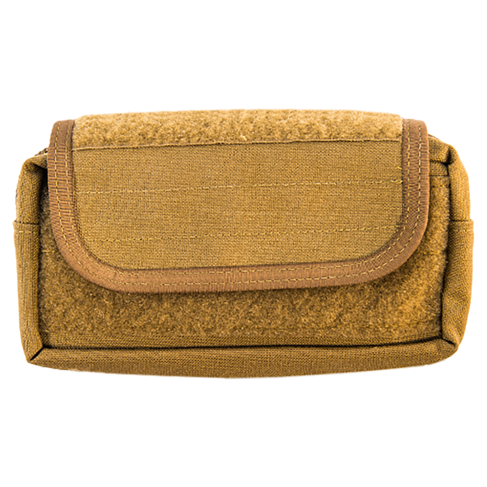 The Pogey Pouch is a versatile horizontal general-purpose pouch crafted from durable nylon in a coyote color. Originally designed for 2nd EOD at MCB Camp Lejeune, this pouch is ideal for use as an admin, medical, or tool pouch. Its unique design features multiple closure options, including a secure zipper beneath the flap to protect contents from the elements while on the move. The flap also allows for quick closure and can compress the pouch with or without using the zipper.