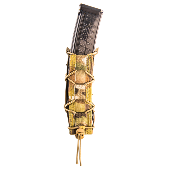 The High Speed Gear MultiCam TACO ABM Belt Pouch is a highly versatile and durable solution for carrying essential gear. Designed to securely hold high-capacity pistol or submachinegun magazines, it also accommodates large flashlights, collapsible batons, suppressors, and other survival equipment. Its innovative Adaptable Belt Mount (ABM) attachment system ensures a sturdy and dependable fit on belts, with a vinyl-backed 1000D Cordura nylon laminate and YKK snap closures for added reliability. The pouch features laser-cut slits that allow you to adjust the belt loop size for compatibility with belts ranging from 1.5 to 2 inches. Built to perform in demanding environments, this pouch combines functionality, durability, and adaptability in a sleek MultiCam design.