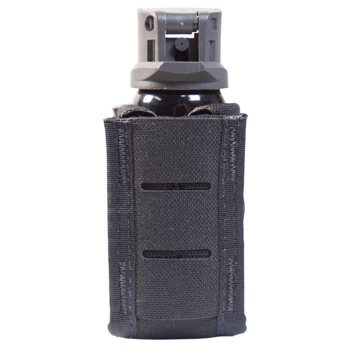 The High Speed Gear Duty OC Spray TACO Holder is a versatile and durable solution for securely carrying your MK3 OC can or similarly sized items. Designed with flexible side brackets, it wraps snugly around the OC can and compresses flat when not in use, ensuring a low-profile design. Constructed with a laser-cut laminate base, this holder provides stable and permanent mounting on MOLLE or PALS platforms, making it perfect for vests, plate carriers, or battle belts. Made from tough nylon material and finished in sleek black, this holder combines functionality and durability for tactical professionals.