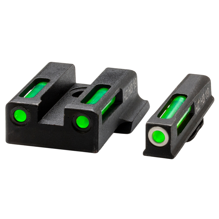 The HiViz LiteWave H3 Sight Set offers a superior aiming solution for your Smith & Wesson M&P EZ380 pistol. This innovative sight system combines cutting-edge fiber optic technology with tritium illumination, ensuring optimal performance in any lighting condition. Built with robust steel frames, these sights are designed to withstand demanding environments, making them ideal for personal defense, law enforcement, or military use. The bright green tritium front sight with a white outline, paired with the green fiber optic rear, provides rapid target acquisition and exceptional visibility. With factory sight height and precise dimensions, this set seamlessly fits your firearm, enhancing accuracy and confidence in every shot.