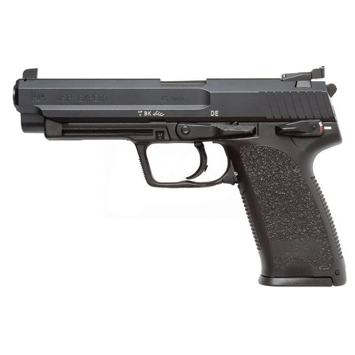 The usp series was developed in the early 1990s by heckler & koch engineers as the company's first undertaking to design a handgun especially for the american civilian and law enforcement markets.Combining traditional blowback operation using a modified browning locking system on a high strength polymer frame, the usp has a well earned reputation for reliably and robust simplicity.The usp expert offers significant additional features making it a unique handgun designed for specialized applications.It combines elements of the usp tactical, usp elite, and mark 23 with a long slide design.The result is a highly accurate pistol ideally suited to ipsc (international practical shooting competition) and other practical target shooting applications.In addition to its longer slide the longest found on any hk pistol the usp expert has the same adjustable target sights, ambidextrous control levers (with safe, fire and decock functions), and an o-ring barrel found on other specialized models of the usp.