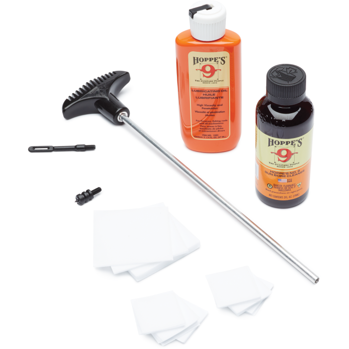 The Hoppes Pistol Cleaning Kit offers a comprehensive solution for maintaining your .38, .357, and 9mm firearms. This thoughtfully assembled kit includes Hoppes No. 9 Solvent and lubricating oil for effective cleaning and protection. Equipped with an aluminum cleaning rod, nylon brush, slotted end, and jag, it ensures thorough maintenance. The kit's clam pack design adds convenience, making it an essential addition to any firearm enthusiast's collection.