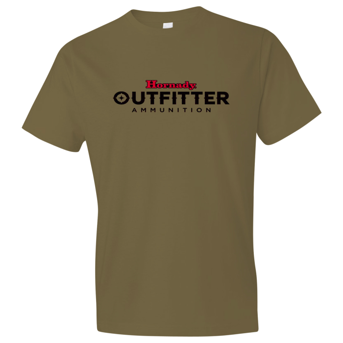 The Hornady Big Buck T-Shirt offers superior comfort and style with its semi-fitted design and 100% shrunk combed ringspun cotton construction. Featuring a bold big back print and a center front print, this short-sleeve shirt stands out with its striking Horizon design. The lightweight 4.30-ounce fabric in a versatile coyote brown color ensures a great fit and easy wear. Perfectly tailored in size Large, this t-shirt is a must-have for those seeking a unique blend of quality and aesthetics in casual apparel.