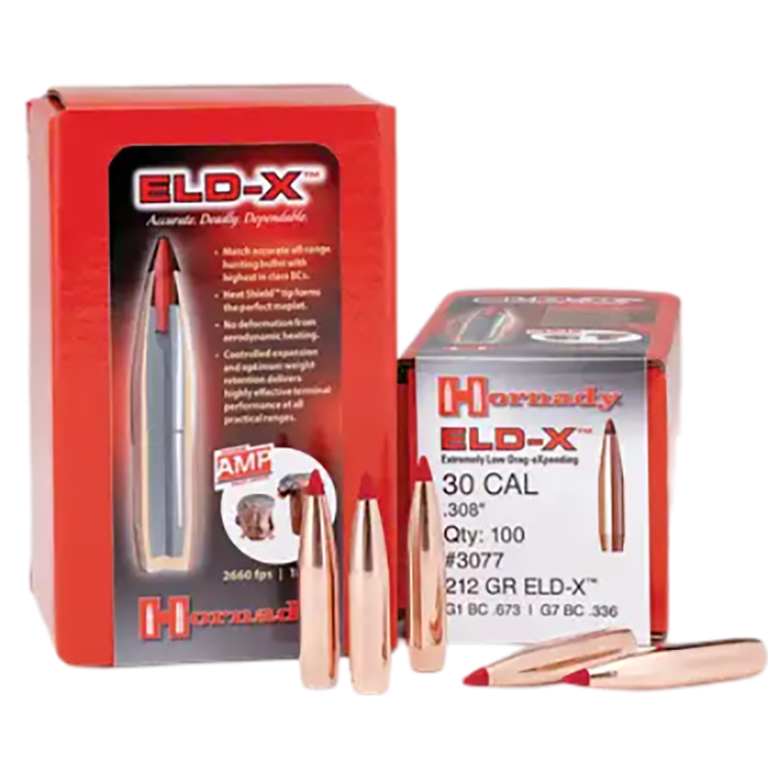 Introducing the 30 Caliber (0.308") 220gr ELD-X bullets, meticulously crafted for precision and performance. With an impressive G1 ballistic coefficient of 0.654 and a G7 coefficient of 0.329, these bullets are engineered for exceptional aerodynamic efficiency and long-range accuracy. Designed in the ELD-Match style, the ELD-X bullet style ensures superior expansion and weight retention, making it ideal for both target shooting and hunting applications. Each bullet measures 0.308 inches in diameter and weighs 220 grains, offering a perfect balance of power and precision. With a sectional density of 0.331, these bullets deliver deep penetration and reliable terminal performance. Available in a convenient box of 100, the 30 Caliber 220gr ELD-X bullets are the ultimate choice for discerning shooters seeking unparalleled quality and consistency.