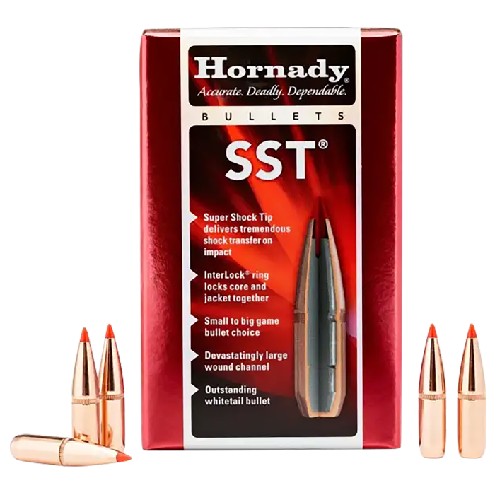 The 7mm (0.284'') 154gr SST bullets offer precision and power for shooters and hunters. Featuring a ballistic coefficient of 0.525, these bullets are designed for superior aerodynamics and performance. The InterLock brand ensures reliable terminal impact, while the Super Shock Tip (SST) design maximizes energy transfer upon impact. With a caliber of 284 and a diameter of 0.284 inches, these bullets provide excellent accuracy and stability. Each box contains 100 bullets, with a grain weight of 154 and a sectional density of 0.273, making them ideal for long-range shooting and hunting applications.